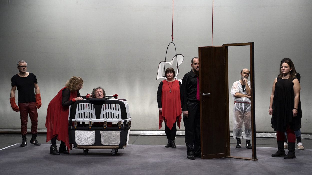 Flavia Mastrella e Antonio Rezza, vincitori del Leone d’oro della Biennale di Venezia nel 2018, hanno creato una lingua teatrale dall’identità inconfondibile, che attraversa le discipline artistiche in modo anarchico e impavido, passando dal cinema alla letteratura, dall’arte plastica alla fotografia. Il loro modo di fare teatro è sempre dirompente e corrosivo, e si potrebbe dire anche rabbioso e tracotante in “Hybris”, il loro ultimo spettacolo in scena il 9 e 10 marzo al Teatro Ariosto di Reggio Emilia nella stagione de I Teatri. In greco antico “hybris” significa “tracotanza” e contraddistingue l’atteggiamento di sfida dell’uomo verso gli dèi, pericoloso e di solito punito. Ma nella lettura dei due artisti e nel loro ultimo esilarante “pastiche” teatrale e linguistico, «la hybris è oggi anche l’arte svuotata dei suoi significati nella nostra società che ha perduto la capacità di guardare in profondità e si culla nella meraviglia e nella virtualità della tecnologia».